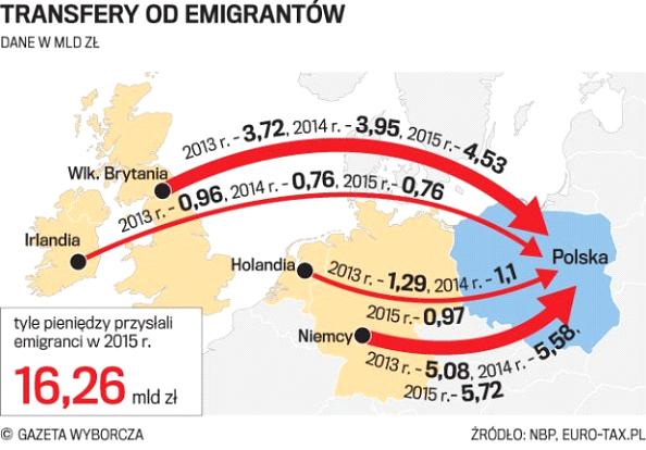 Pośród krajów UE, nadal najwięcej osób przebywało w Wielkiej Brytanii (720 tys.), Niemczech (655 tys.), Holandii (112 tys.) oraz w Irlandii (111 tys.) i we Włoszech (94 tys.).