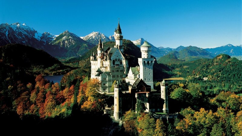 Zamek położony w Alpach w południowej części Bawarii, to jeden z najsłynniejszych i najczęściej fotografowanych zabytków w Niemczech. Wybudowany został w 1869 r. na polecenie bawarskiego króla Ludwika II na stromych skalnych ścianach nad przełomem rzeki Pöllat.